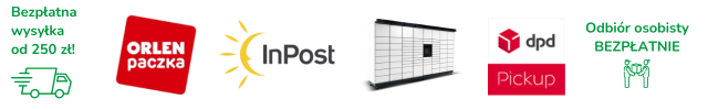 - DPD Odbiór w punkcie Pobranie - 14,99 zł - dostawa do punktu - płatność przy odbiorze.
